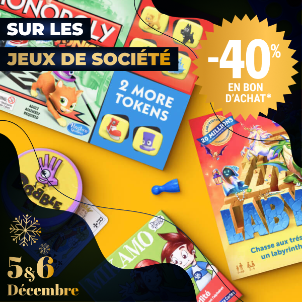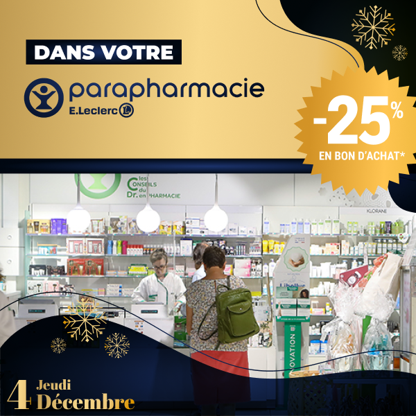 *Bon d'achat papier valable sur présentation de la Carte E.Leclerc, non cumulable avec les autres promotions en cours.Valable dès le lendemain et jusqu'au 3 janvier 2026