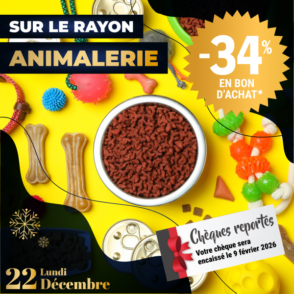 Pour votre santé, évitez de manger trop gras, trop sucré, trop salé www.mangerbouger.fr. *Bon d'achat papier valable sur présentation de la Carte E.Leclerc, non cumulable avec les autres promotions en cours.Valable dès le lendemain et jusqu'au 18 décembre 2025